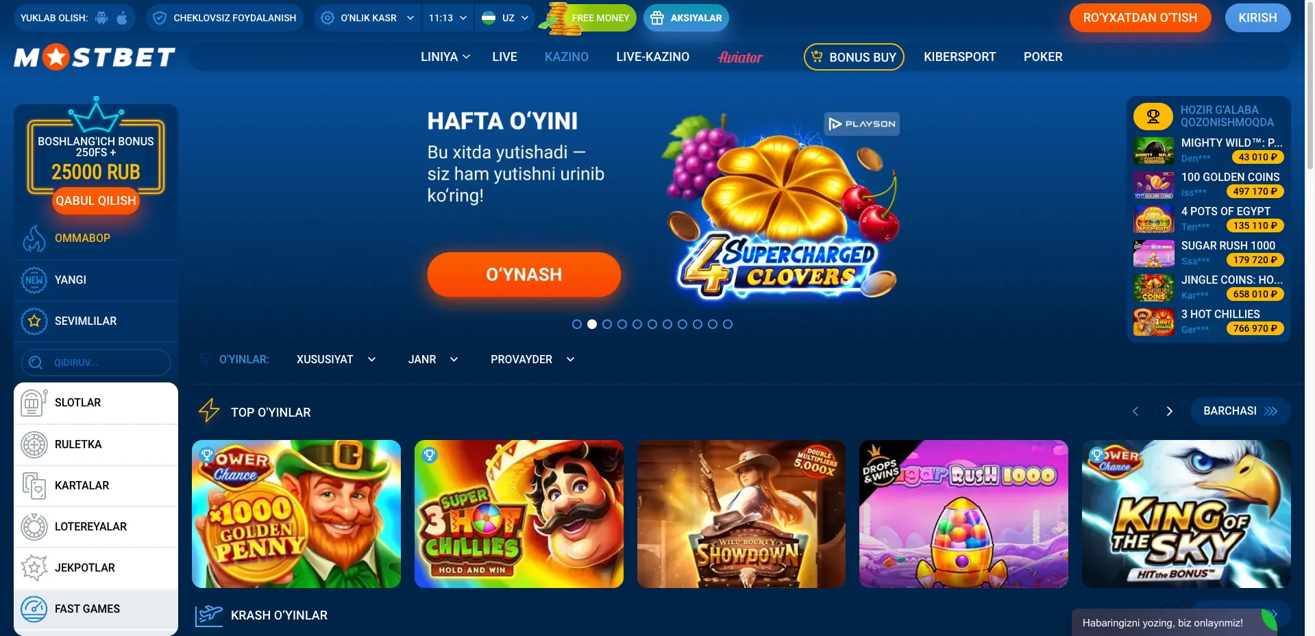 Mostbet online kazino dünyasına daxil olanda ilk hiss etdiyiniz şey – zəngin, rəngarəng və sürətli oyun seçimi olur. Burada həm klassik slotlar, həm canlı diler masaları, həm də ani uduş verən xüsusi oyunlar bir məkanda toplanıb. İstər mostbet uz brauzer versiyasından, istər mostbet skachat və ya mostbet apk ilə telefondan daxil olun, bütün oyunlar eyni keyfiyyət və sürətlə açılır.